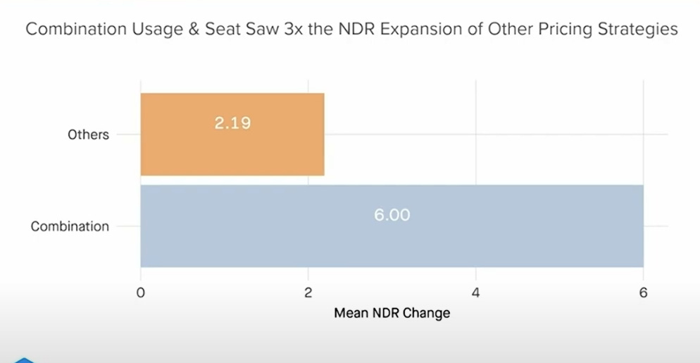 Companies using a combination pricing model (seats plus usage) experience 3x the growth in net dollar retention compared to those using other pricing models.