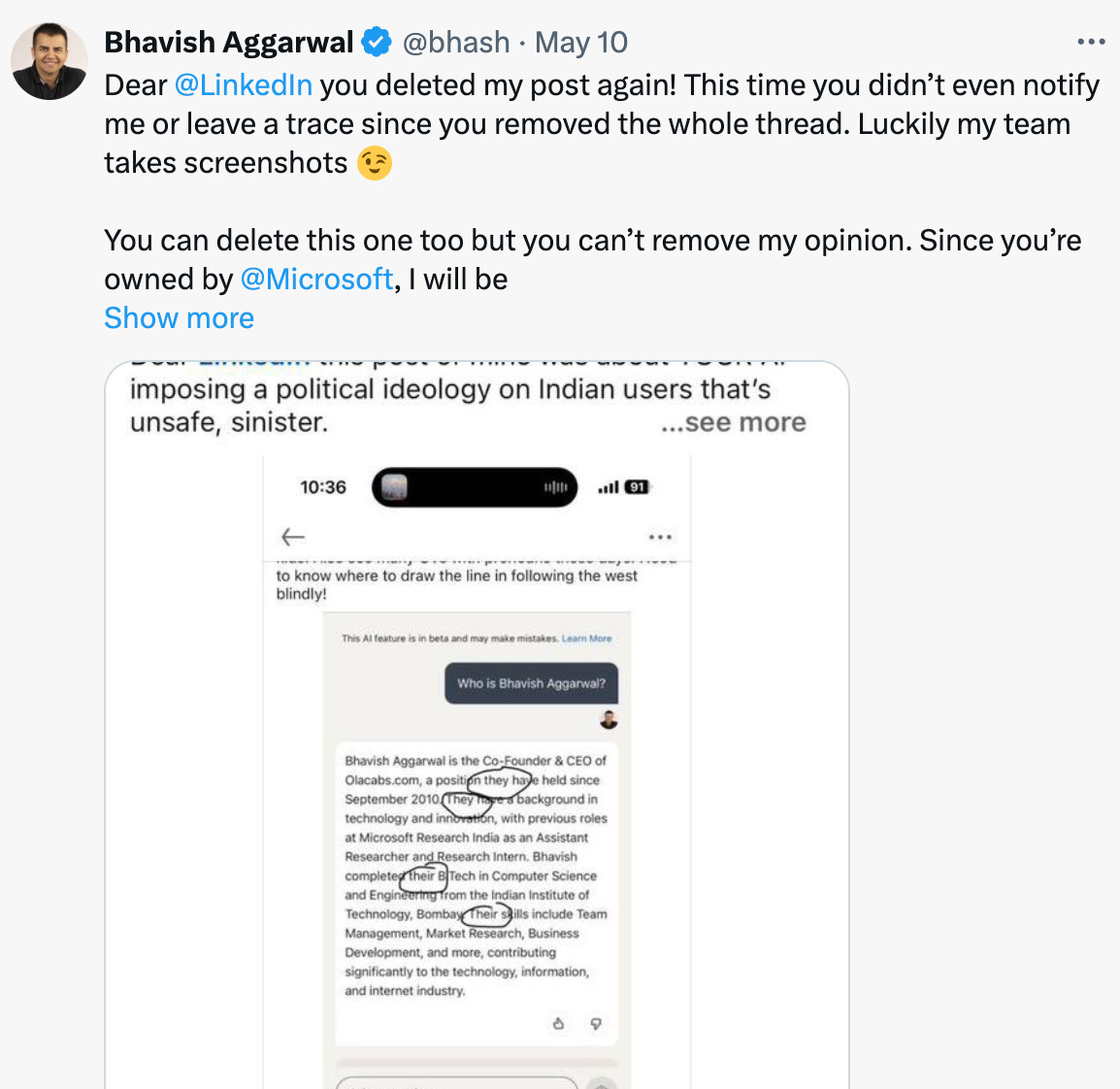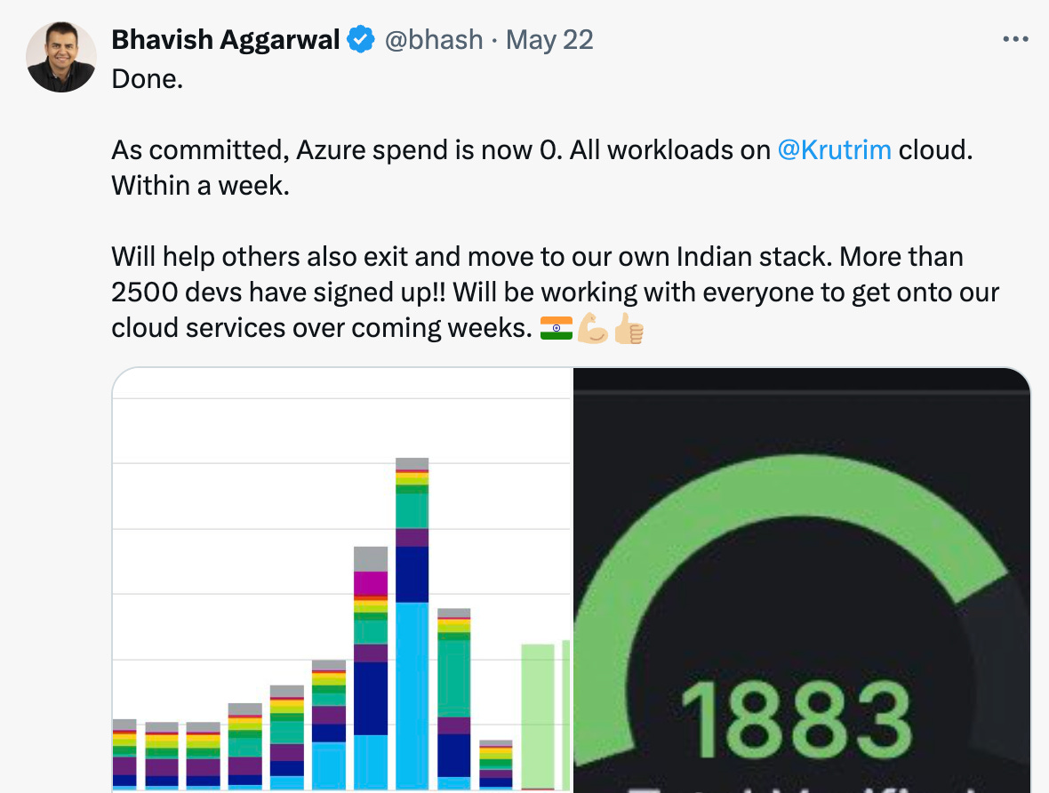 And yeah, kudos to Bhavish for walking the talk - by moving away from Azure to Krutrim cloud.