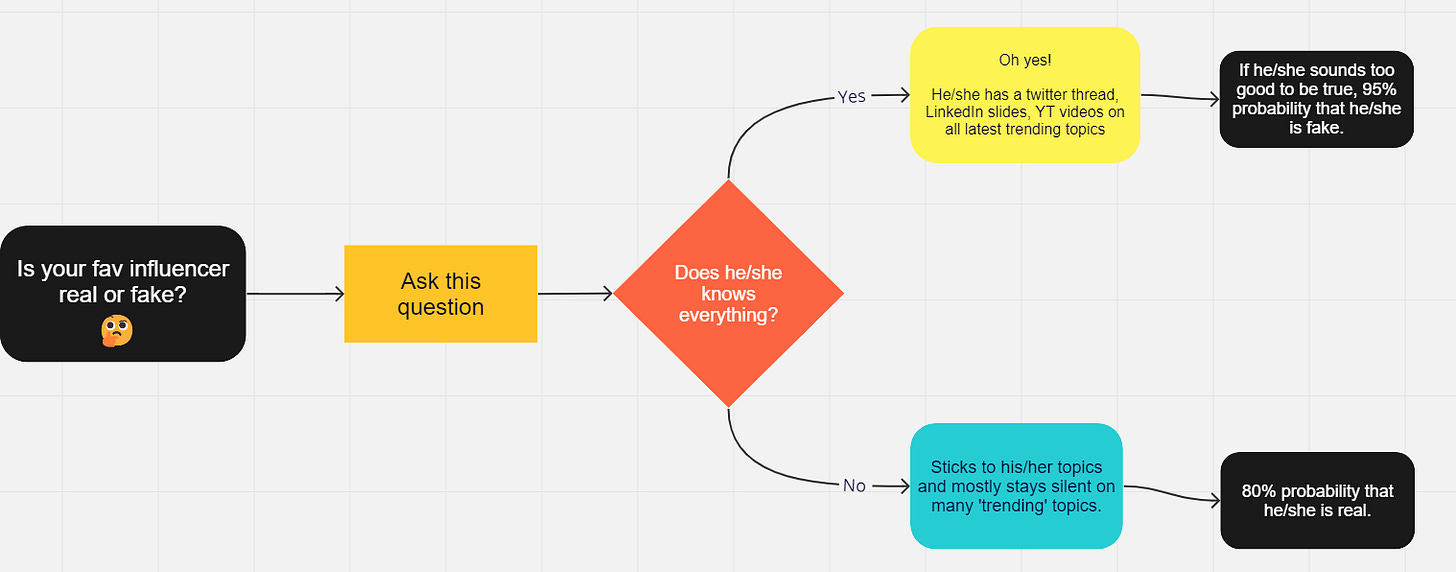 So, I came up with a simple flowchart to help you understand whether your fav influencer is real or fake.