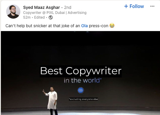 Bhavish has done a remarkable job of PR and that too, driving the PR machinery on his own name / personality.