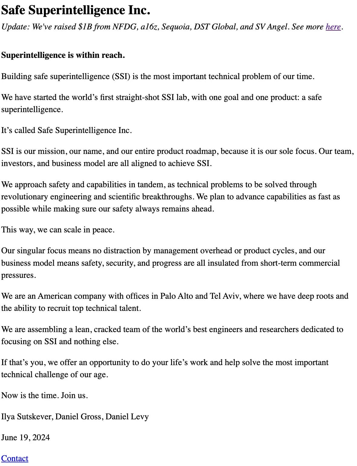 But whether that means far more advanced LLMs or something completely different isn't clear yet. But the VC bet here is quite simple: If SSI succeeds in building safe superintelligence, then whatever product they build will unlock unimaginable productivity gains that companies and people will pay billions for. At that point, $5 billion will look like pocket change (via)